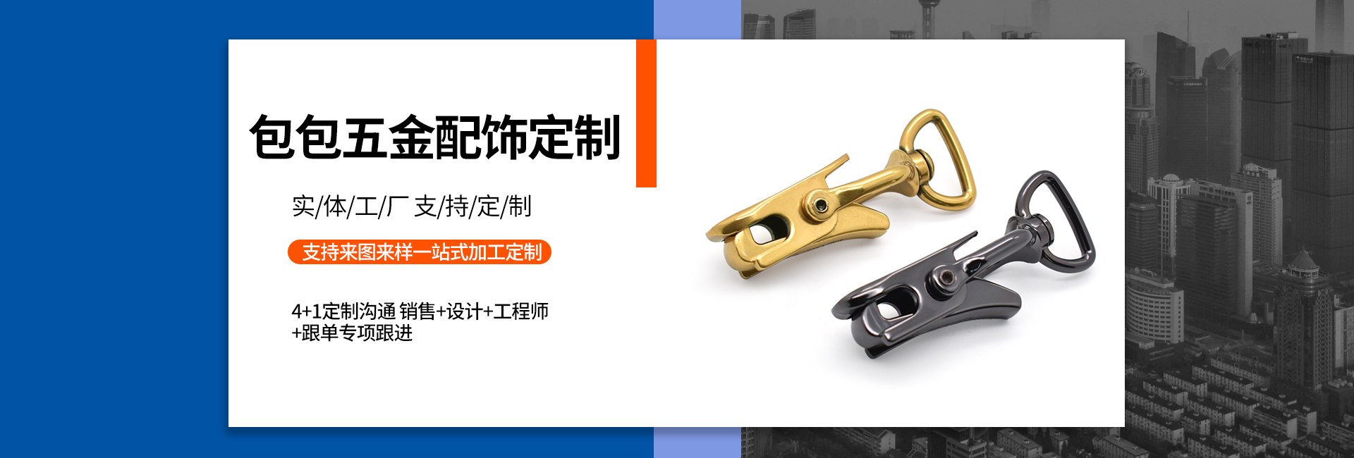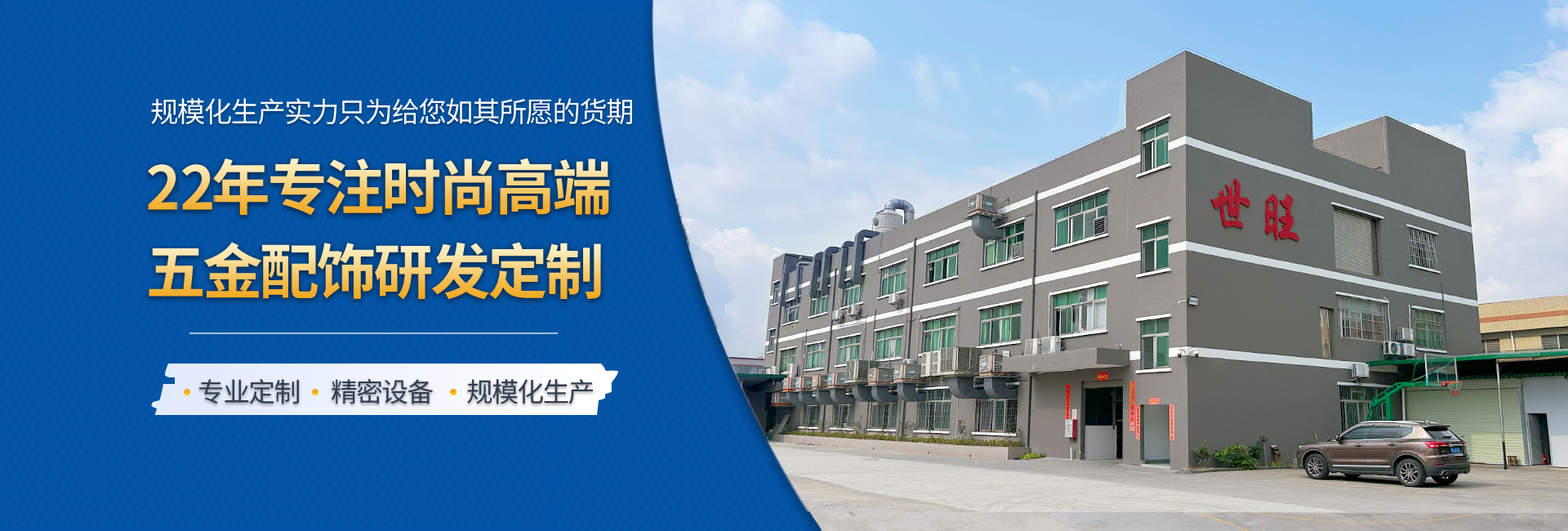 世旺五金是一家專業(yè)從事手袋箱包五金配飾定制生產(chǎn)的工廠,始創(chuàng)于2004年,至今19年五金配飾定制經(jīng)驗,是集研發(fā)、設計、制造、電鍍、銷售于一身的企業(yè),擁有14000多平的生產(chǎn)基地,全自動化生產(chǎn)能力,自有模具制造車間和電鍍工廠,日產(chǎn)能20多萬件,還有強大的技術團隊和高效的銷售網(wǎng)絡。我們以市場需求為導向,不斷探索和創(chuàng)新,在產(chǎn)品品質(zhì)和性能上達到領先水平。 我們的產(chǎn)品包括各類五金制品,如高端皮具手袋、消費電子、禮品/工藝品包裝、寵物穿戴、汽車裝飾等領域五金配飾,應用廣泛,覆蓋行業(yè)多。 以客戶需求為中心,為客戶提供全方位的一站式服務,包括售前咨詢,生產(chǎn)跟進,售后服務等等。提供保姆式顧問式服務,與品牌商、手袋廠等共同打造好產(chǎn)品,好IP。
